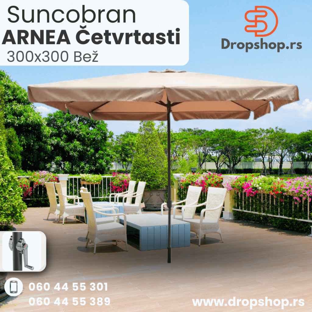 ARNEA Četvrtasti Alu Suncobran 300x300cm Bež