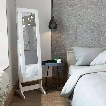 Okretno ogledalo sa ormarićem za nakit i pribor Bela