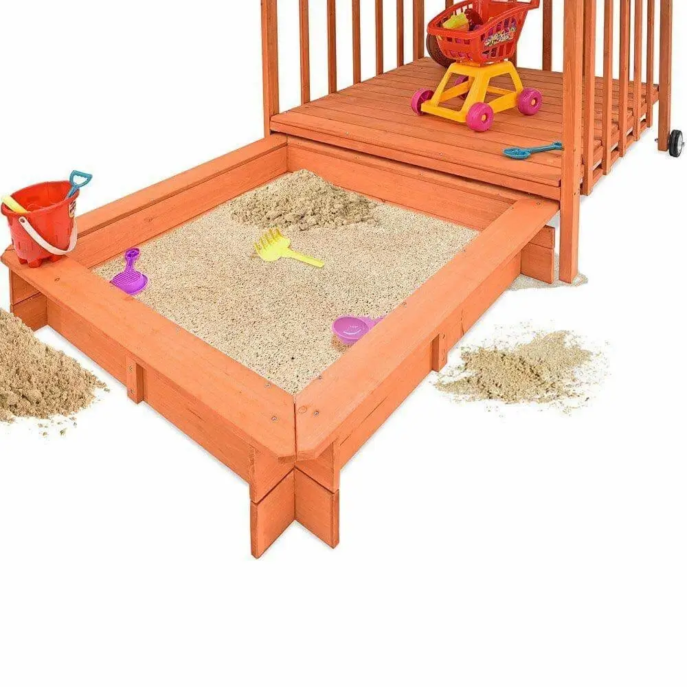 Naša drvena igraonica sa peščanikom i krovom u hladu može pružiti mališanima pravo iskustvo igre.