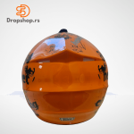 Moderan narandžasto-crni dizajn ističe sportski duh vozača, dok je unutrašnja postava izrađena od mekih, perivih materijala koji omogućavaju disanje i lako održavanje.